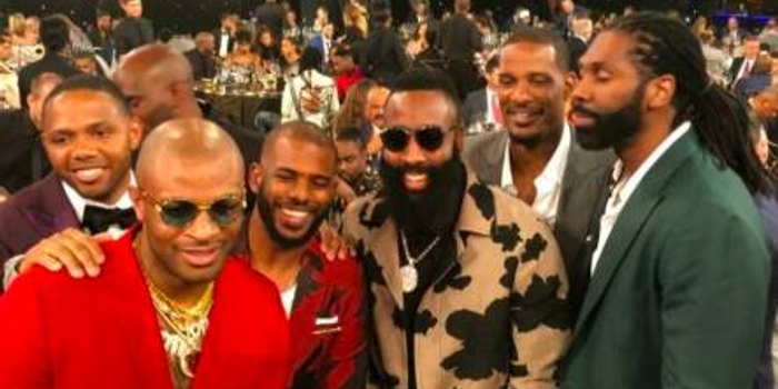 拉塞尔·威斯布鲁克以单赛季42次三双打破奥斯卡·罗伯特森的历史纪录,场均31.6分10.7篮板10.4助攻的史诗级表现,力压詹姆斯·哈登(场均29.1分8.1篮板11.2助攻)当选MVP。威少登台时身着一套亮片西装,哽咽感谢队友的画面成为典礼经典。哈登虽遗憾落选,但其带领火箭取得55胜的团队表现仍获联盟认可,现场与威少的拥抱展现了竞技的惺惺相惜。